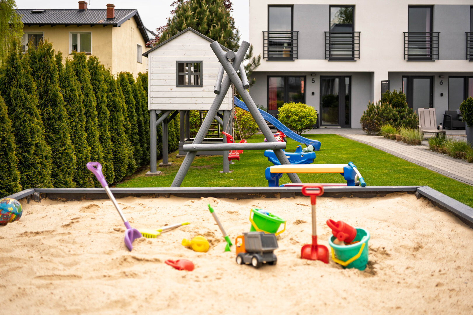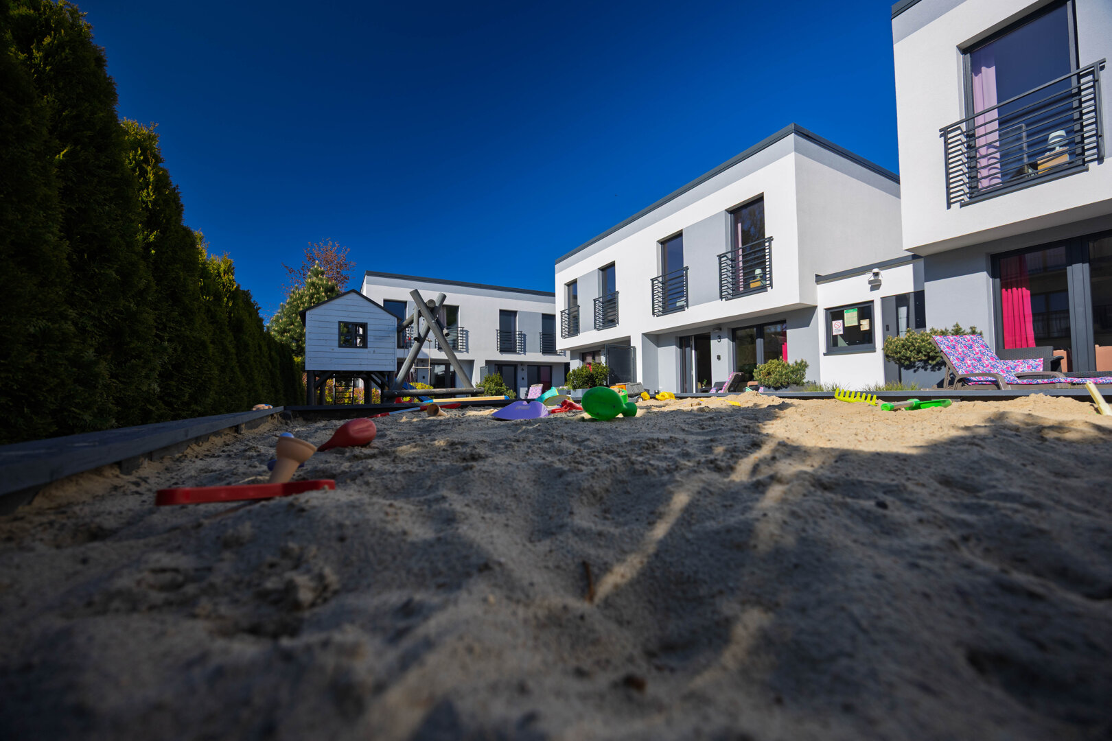 - Plac zabaw i piaskownica dla najmłodszych na terenie obiektu