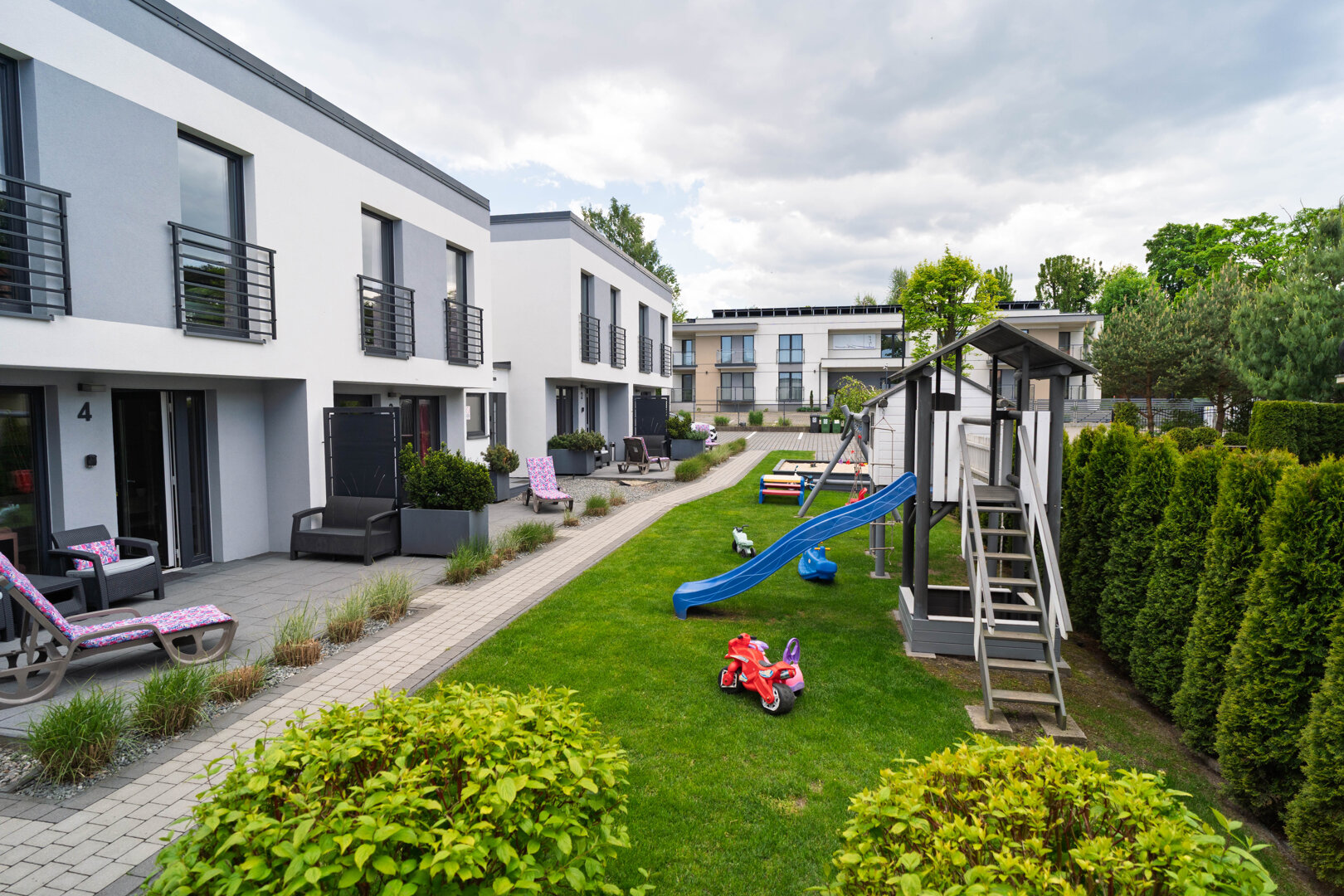 - Miejsce na grilla, taras z meblami i leżakiem