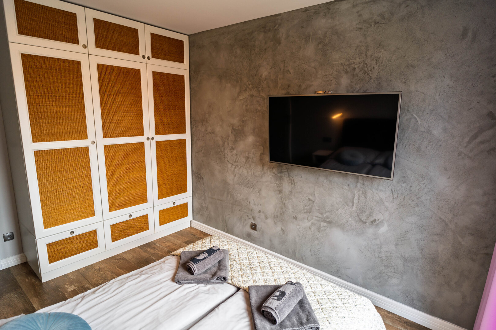 Liczba łóżek: 1 duże łóżko podwójne, 1 łóżko podwójne (Double) lub 2 łóżka pojedyńcze (Twin) - do decyzji gościa, 1 sofa rozkładana (Sofa Bed)